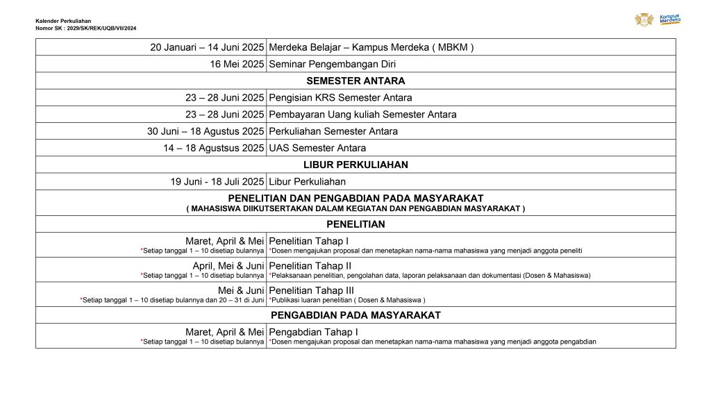 Kalender Perkuliahan Semester Genap T.A 2024/2025